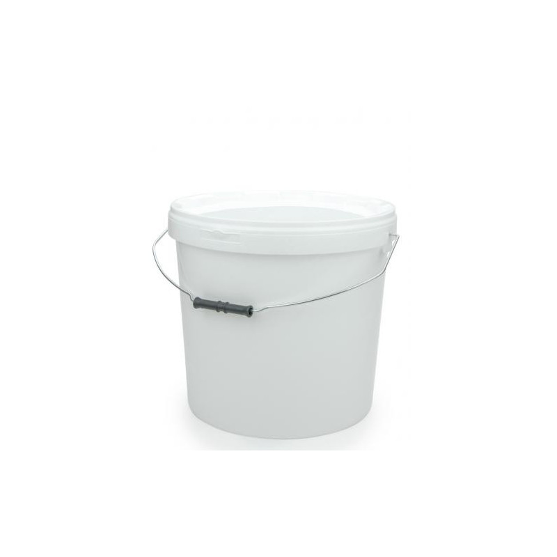 Latta a secchiello, in plastica alimentare, capacità 25kg di miele. Completa di coperchio a pressione con fascia di sicurezza , manico in ferro
